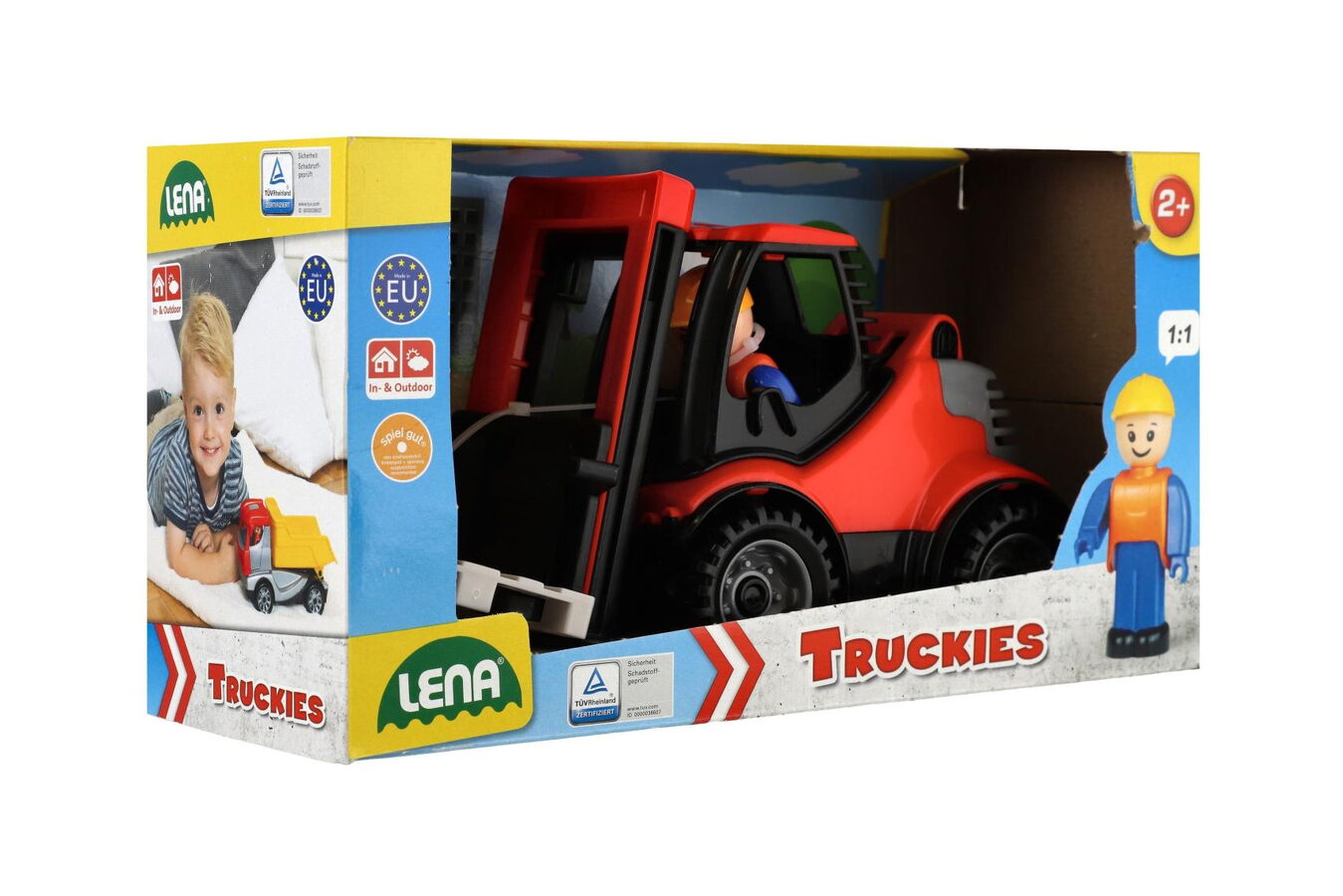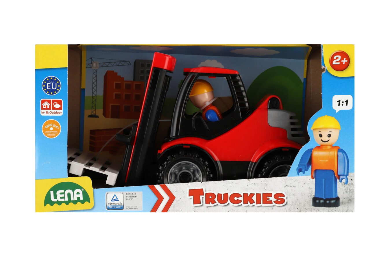 Truckies vysokozdvižný vozík s paletou z kvalitního plastu a velmi pevnou stavbou. Plně mechanicky funkční. Obsahuje odklopitelnou kabinu s aktivním panáčkem.