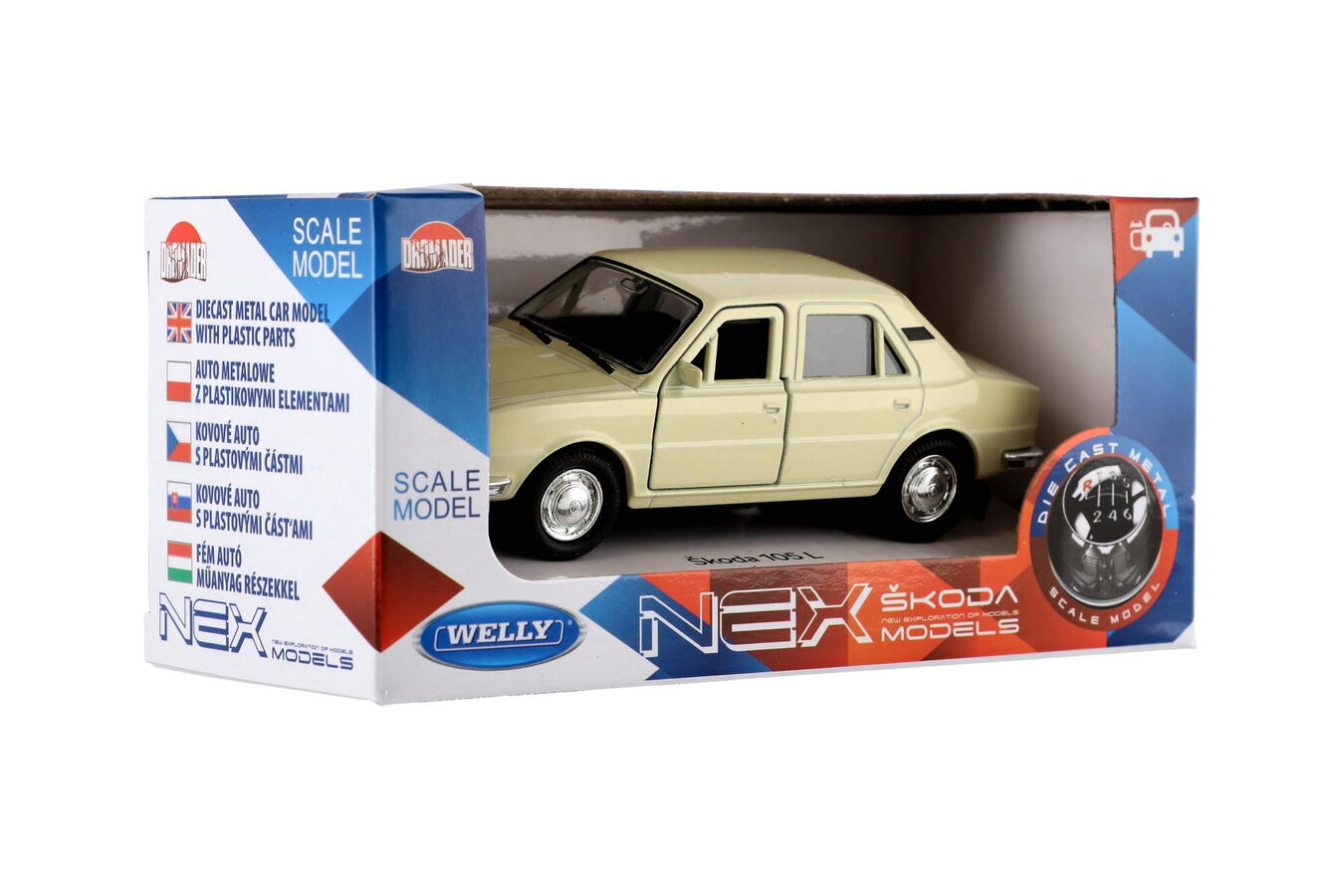 Auto Welly Škoda 105L kov/plast 11cm 1:34-39 na volný chod 4 barvy v krabičce 15x7x7cm