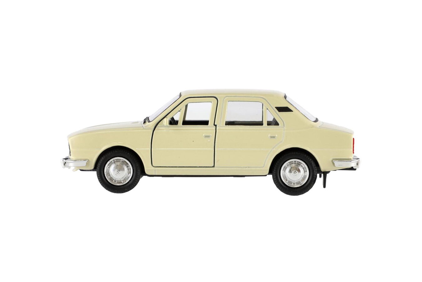 Model osobního auta s otevíracími dveřmi a kufrem, připraven k přidání do Vaší sbírky. Auto je stříkané originálním autolakem. Luxusní vůz je vyroben z kovu a má plastové doplňky. Vozidlo je věrnou kopií reálných aut značky Škoda 105L.