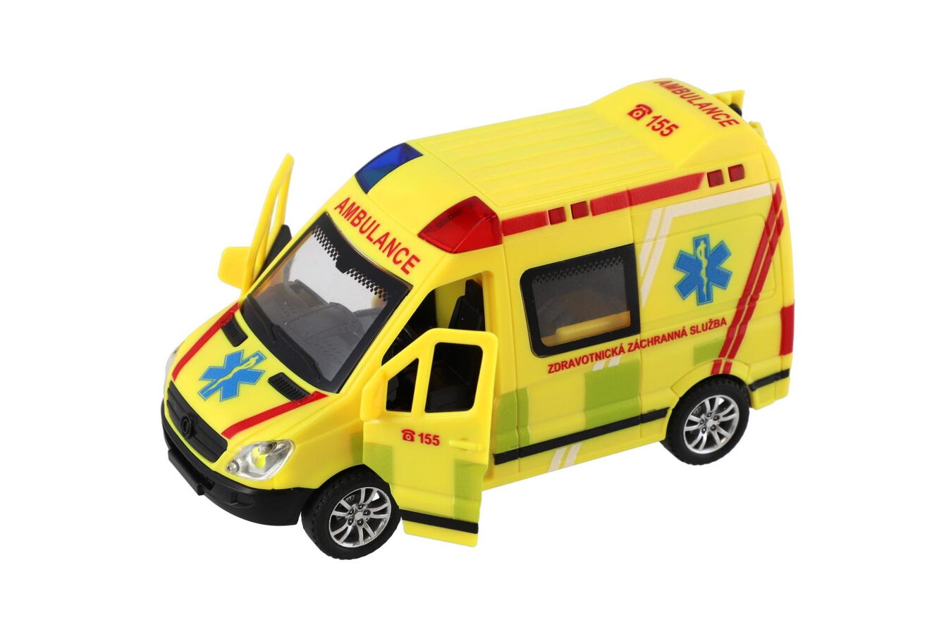 Plastová sanitka o velikosti 14,5 cm potěší všechny malé záchranáře. Autíčko jezdí na setrvačník – stačí ho postrčit a samo se rozjede vpřed. Díky světelným a zvukovým efektům působí hra ještě realističtěji a děti si mohou snadno představit skutečnou záchrannou akci. Otevírací dveře dodávají hře na autentičnosti a rozvíjejí dětskou fantazii. Vhodné pro děti od 3 let.