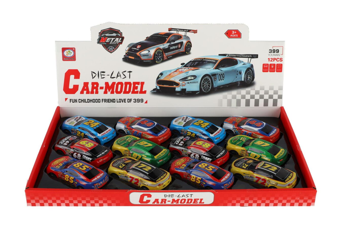 Připravit, pozor… start! Stylová závodní autíčka s barevnými čísly a sportovní grafikou přinášejí rychlost, zábavu i sběratelské nadšení. Autíčka mají kovovou karoserii a zpětné natažení (pull-back). Stačí natáhnout dozadu a pustit – auto samo vyrazí vpřed!