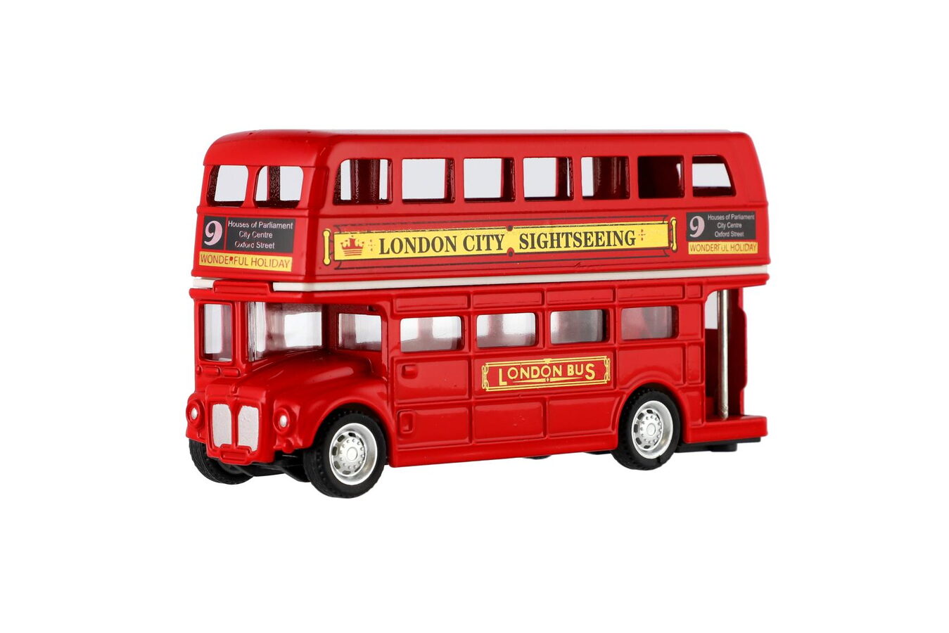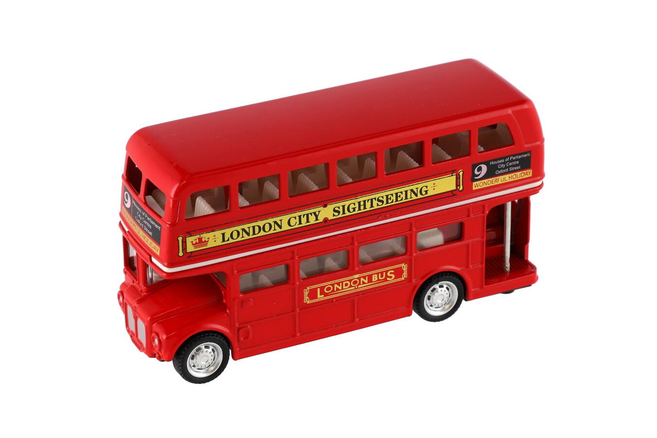 Ocitněte se v kouzelném Londýně díky typickému červenému autobusu. Tento dvoupatrový autobus s uzavřenou střechou vás doveze kamkoli. Velikost autobusu je 12 cm.