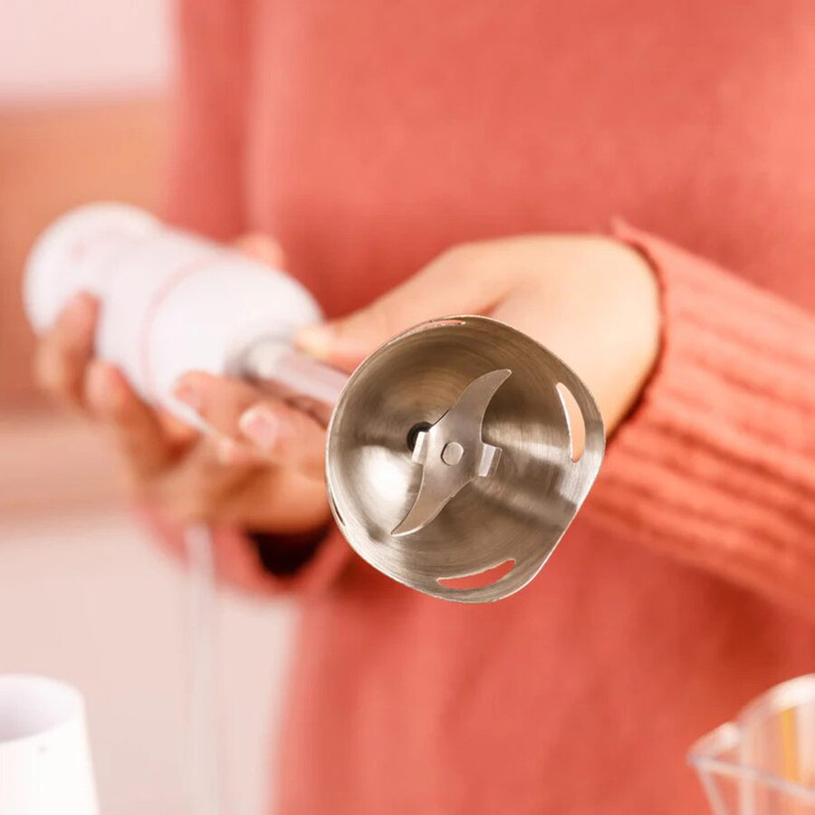 - obsahuje kompletní sadu příslušenství: mixovací noha, šlehací metla, sekáček, vysoká nádoba s odměrkou