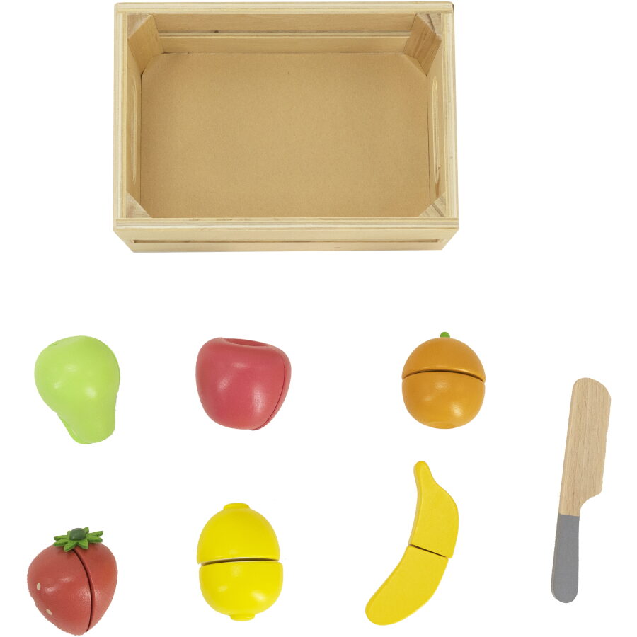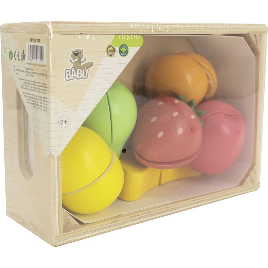 V přepravce najdete pečlivě zpracované kusy ovoce, které jsou barevné a atraktivní pro děti. Kvalitní dřevěný materiál zaručuje bezpečnost a příjemný pocit při hře.