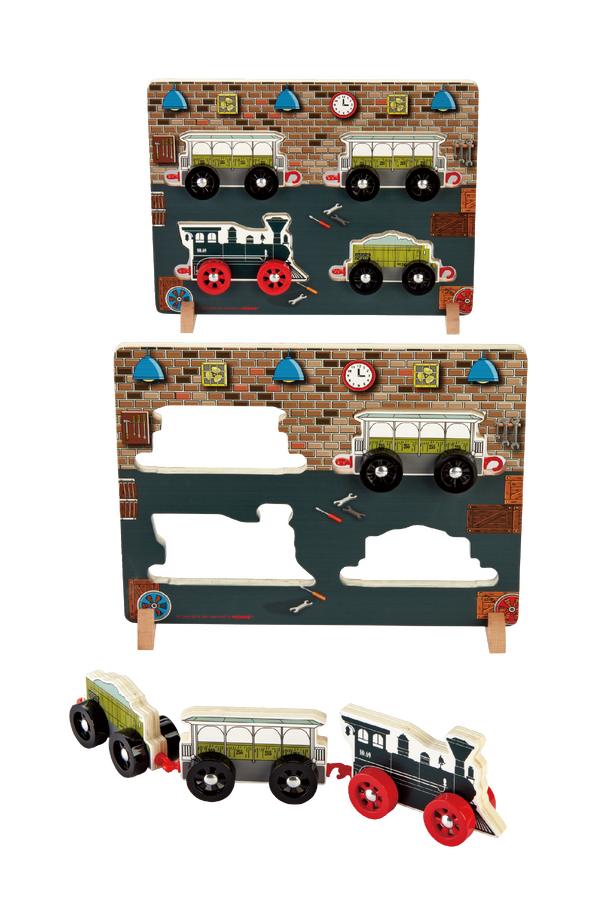 BABU - Dřevěné puzzle vláčky - sada 4 ks