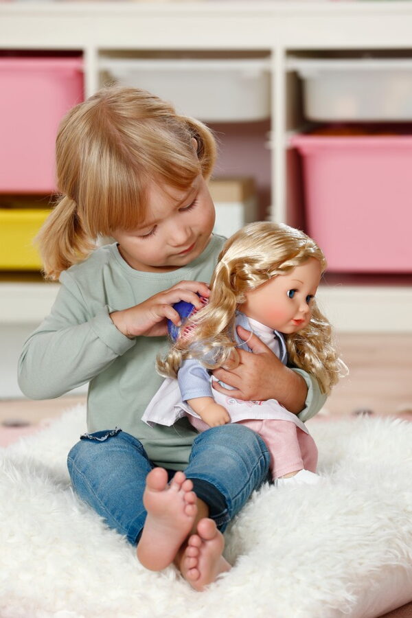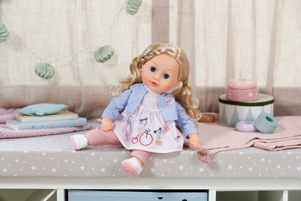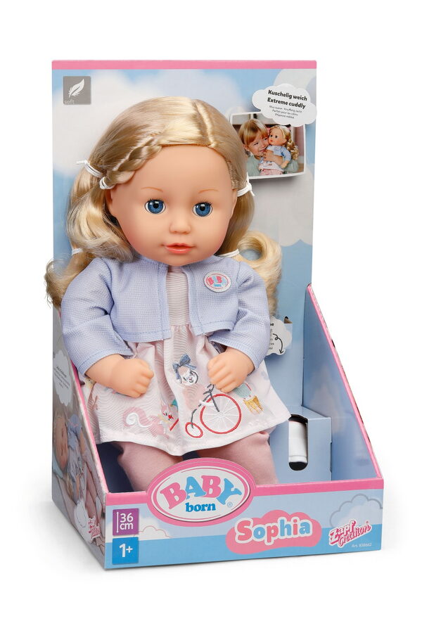 BABY born Sophia růžová, 36 cm. • Má měkké tělíčko na mazlení • Mrkací oči • Kvalitní vlasy pro vytváření účesů • Oblečení – šaty s kabátkem, legíny a boty • Vhodné pro děti od 1 roku