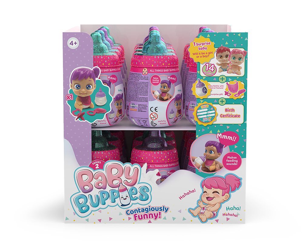 Baby Buppies miminko je vhodné pro děti od 4 let. Vydává reálné zvuky jako opravdové miminko. Zatřes s panenkou, bude se vesele smát.