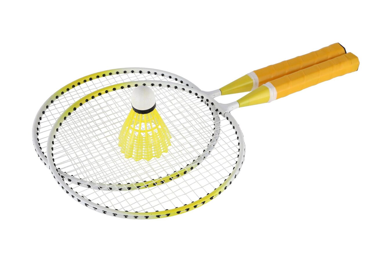 Badminton sada dětská kov/plast 2 pálky + 1 košíček 2 barvy v síťce 23x45x6cm
