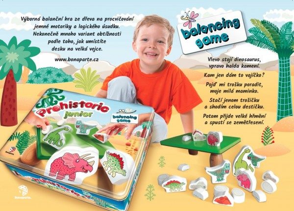 Postavte dinosaury na zemskou desku tak, aby z ní nespadli a deska se nepřeklopila. Pozor na zemětřesení! Hra je s oblíbenými a známými dinosaury z kolekce Prehistoric Junior a z časopisu Sluníčko. Hra podporuje jemnou motoriku, koordinaci a logický úsudek. Nekonečně mnoho variant obtížnosti podle toho, jak umístíte desku na velká vejce.