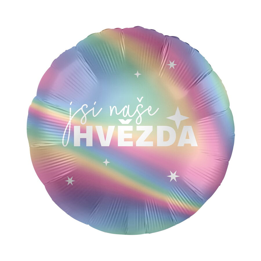 Kulatý fóliový balónek s hvězdným motivem je krásný a originální způsob, jak někomu vyjádřit uznání a obdiv. Velikost/rozměr: 17" – 43 cm Materiál: fólie Balení obsahuje: 1 ks balónku Balónek je možné nafukovat vzduchem i heliem.