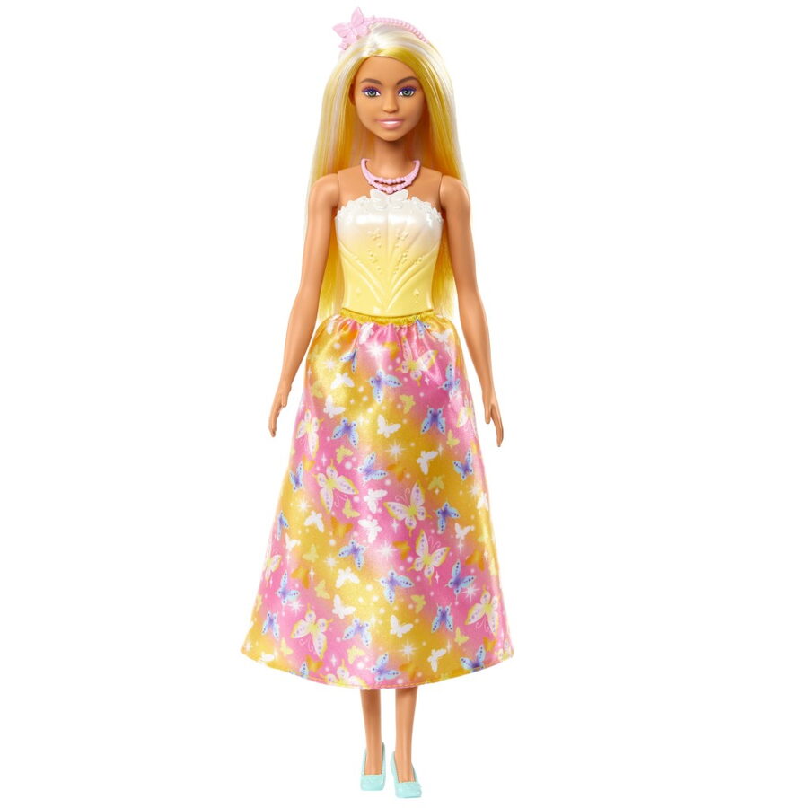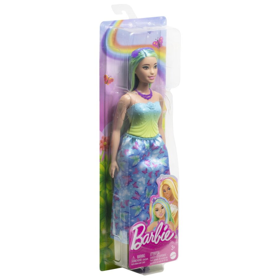 Tyto královské panenky Barbie® přicházejí v duhové škále snových barev! Každá panenka má efektní melír ve vlasech, vymodelovaný živůtek, sukni s potiskem a stylové doplňky. Okouzlující a roztomilé pohádkové panenky Barbie® jsou vyrobeny tak, aby inspirovaly ke kouzelným příběhům o dobrodružství – děti od 3 let je mohou sbírat všechny a užít si báječnou zábavu! Každá se prodává samostatně, podle dostupnosti. Panenky Barbie® nemohou stát samostatně. Barvy a provedení dekorací se mohou lišit.