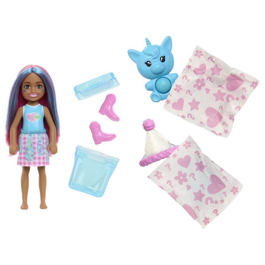 Panenky Barbie® Pop Reveal™ Chelsea™ koktejlové překvapení potěší děti zábavným zvířecím party tématem, rozbalovacími překvapeními a smyslovou hrou! V setu najdete malou panenku Chelsea™, mini zvířátko, módní doplňky a hravé změny barev. Ponořte se do světa překvapení a objevujte, co všechno tento koktejlový set nabízí! Každá panenka se prodává samostatně v závislosti na dostupnosti. Panenky nemohou stát samostatně. Barvy a provedení se mohou lišit.