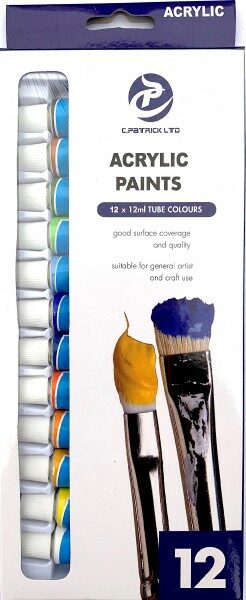 Kvalitní akrylové barvy, které rychle schnou, nemažou se a drží. Při první otevření tuby odšroubujte víčko, otočte ho a hrdlo barvy hrotem propíchněte. Po skončení malování nenechte štětec zaschnout. Umyjte ho pomocí vody a mýdla.