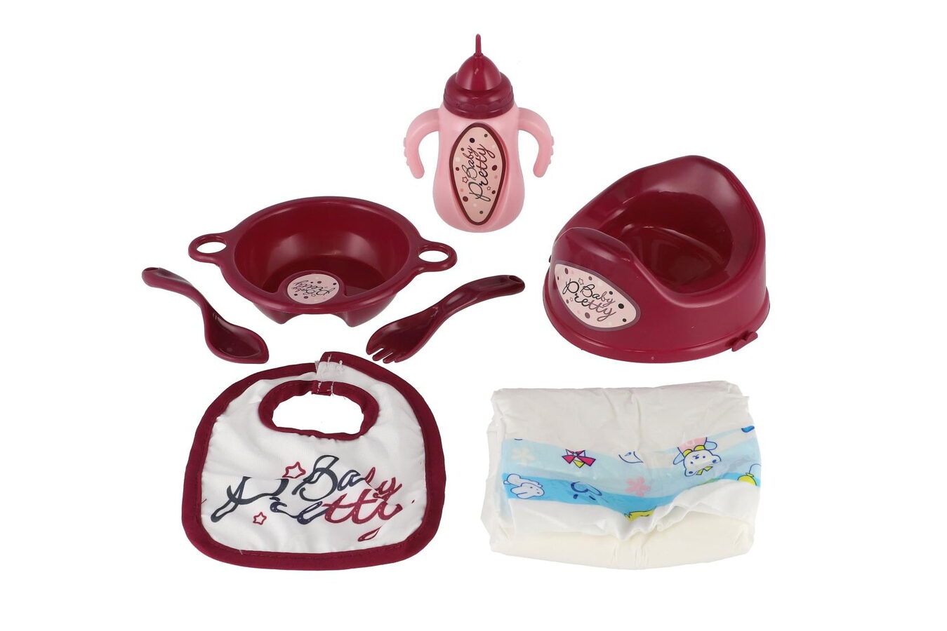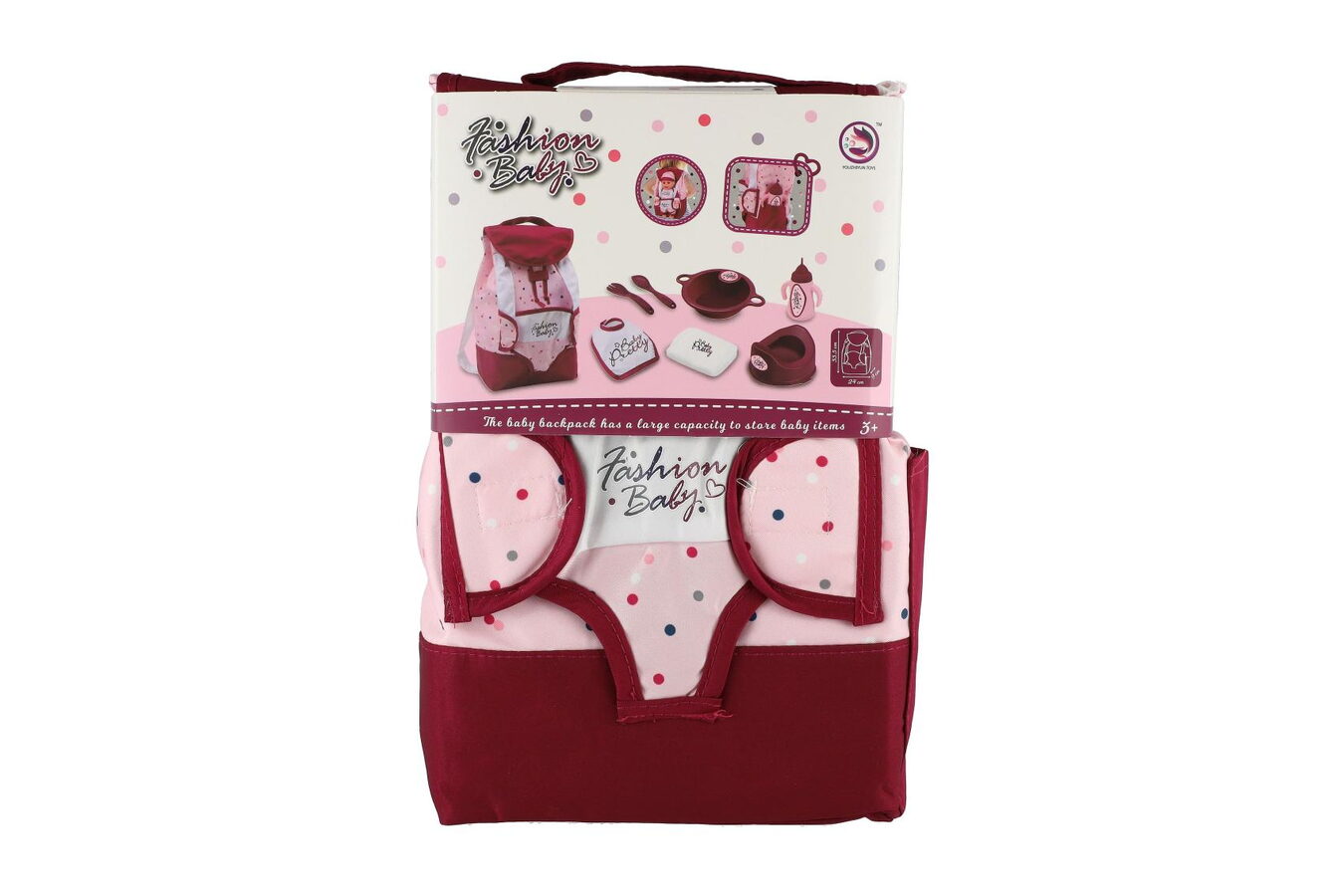 Batoh s nosítkem pro panenku látka 17x26cm s doplňky pro panenku v sáčku