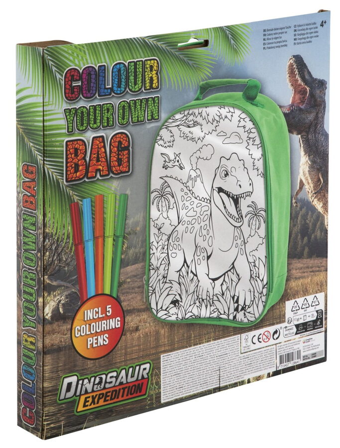 Batoh vybarvovací Dinosaurus – balení obsahuje batůžek + 5 fixů permanentních určených k vybarevní batůžku dle vlastní inspirace.