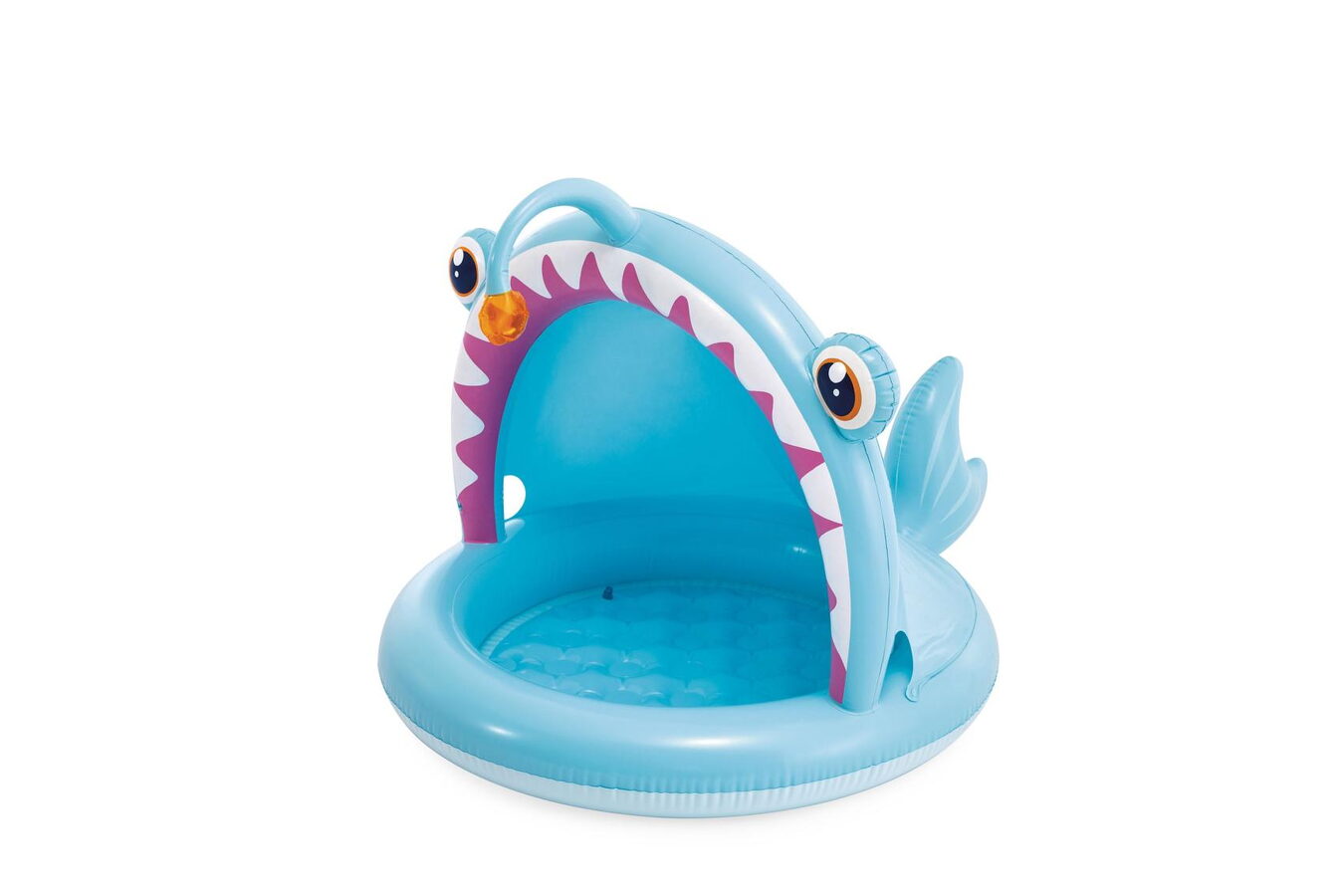 Malý nafukovací bazén je ideální volbou na zahradu během horkých letních dní, kdy se děti potřebují ochladit a vydovádět se ve vodě. Bazén je se stříškouve tvaru ryby.
