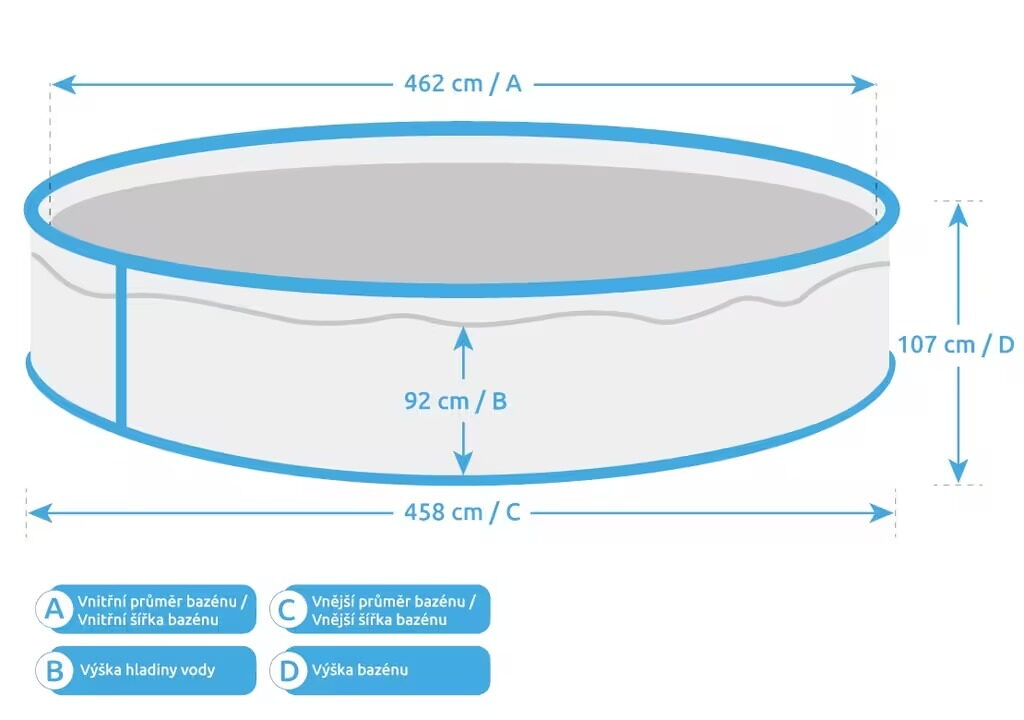 - Průměr bazénu: 4,57 m