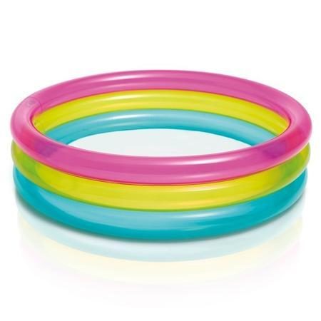 Dětský nafukovací bazének na zahradu nebo k vodě na dovolenou? Přesně toto nabízí firma Intex a její pestrobarevný Rainbow Baby Pool. Ten je vyroben z testovaného kvalitního vinylu s kapacitou vodní stěny 17 cm. Samozřejmou součástí balení je i opravná sada. Produkt splňuje veškeré požadované bezpečnostní normy.