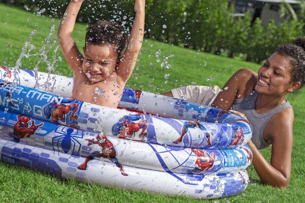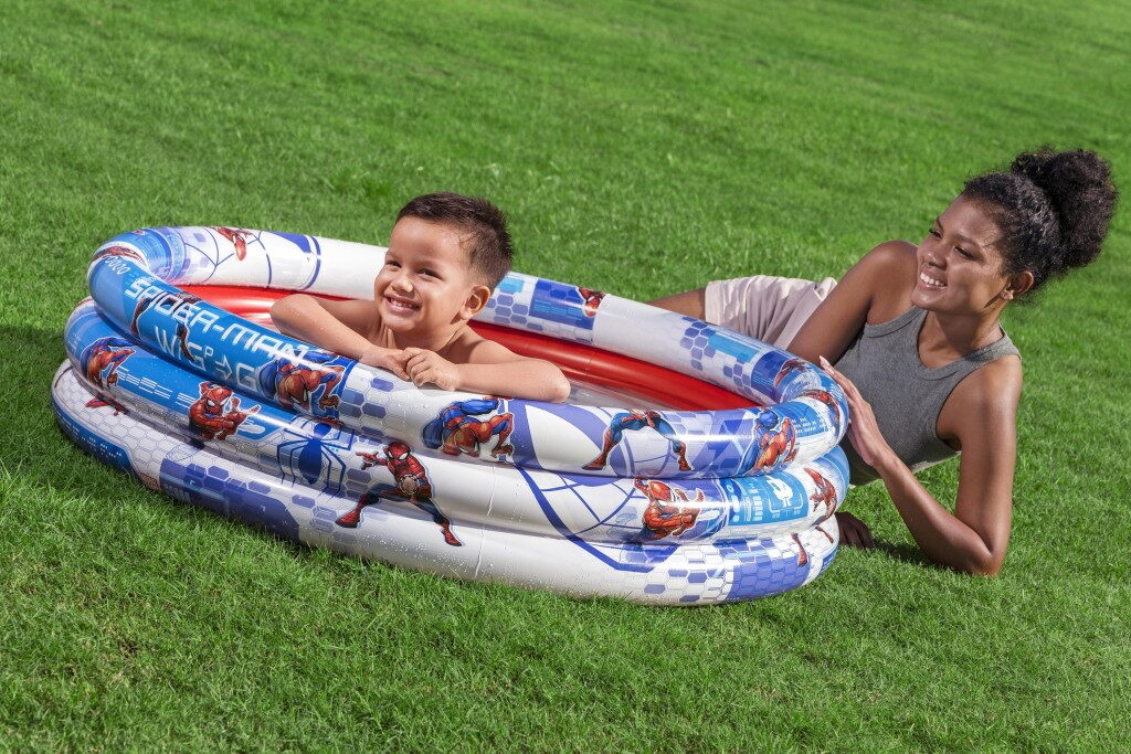 Nafukovací tří kruhový bazén pro děti od 2 let o velikosti 122×30 cm v designu Spider-Man pro malé superhrdiny. • Vyrobeno z kvalitního vinylu. • Opravná sada součástí balení. Objem vody: 200 l