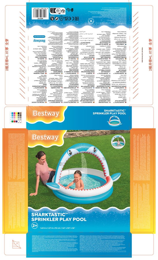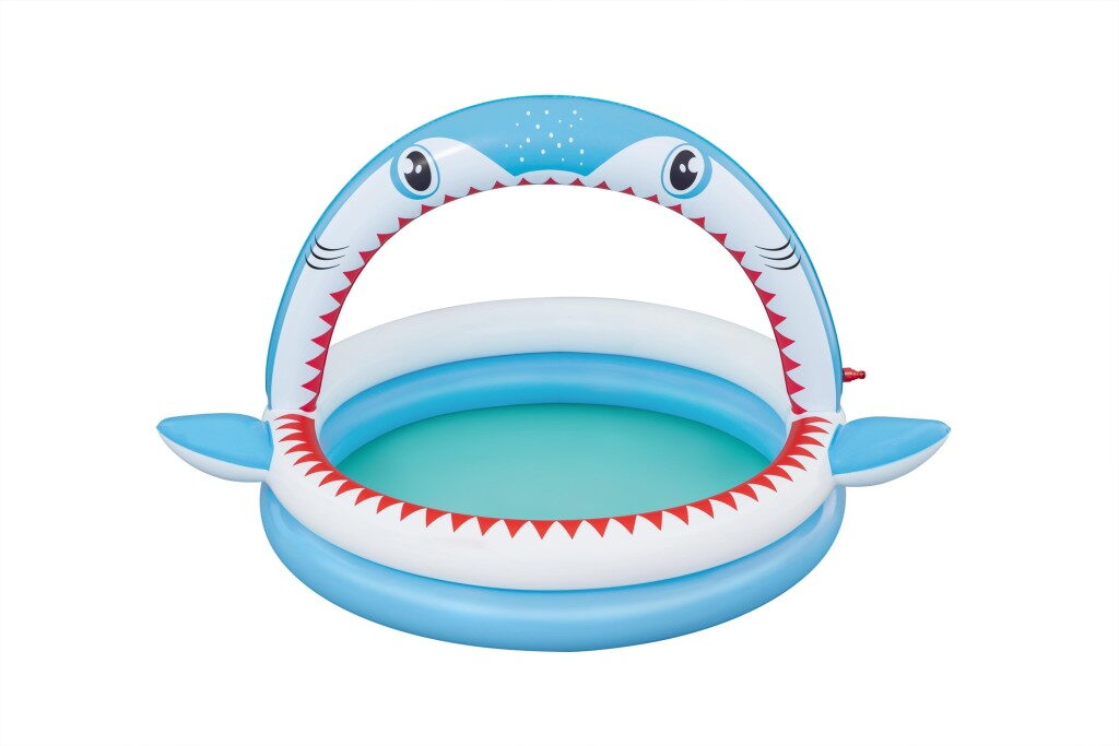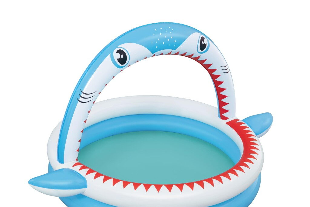 Nafukovací bazének je skvělou nabídkou pro nejmenší děti, které milují zábavu. Navrženo pro děti od 2 let. Bazén je vyroben z odolného PVC, má nafukovací oblouk se sprškou, stačí pouze připojit zahradní hadici. Objem vody: 130 l a opravná záplata je součástí balení. Rozměry: 163 cm x 127 cm x 92 cm