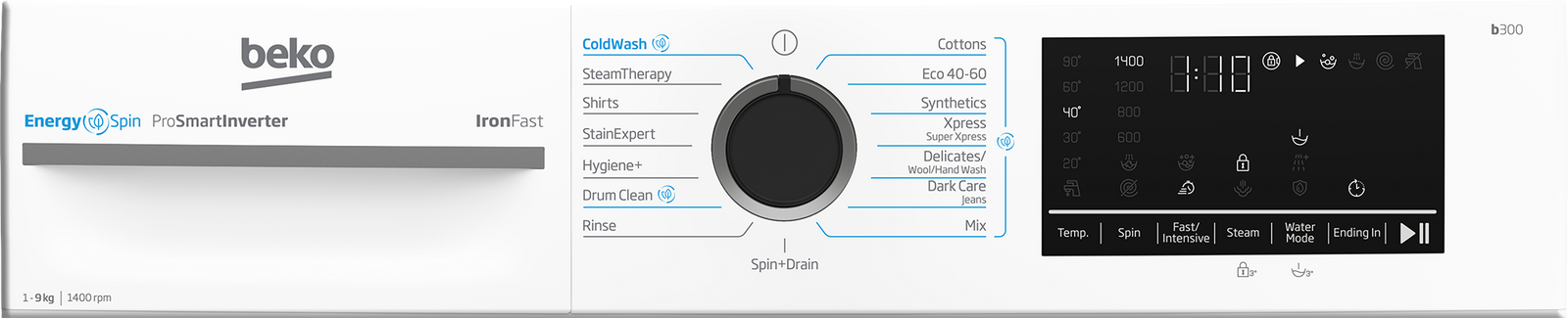 Pračky Beko EnergySpin přináší revoluci v úsporném praní. S energetickou třídou A a úsporou až 35 % energie je možné prát i v běžných programech jako je bavlna, syntetika nebo rychlé praní. Inovativní pohyby bubnu minimalizují spotřebu energie a zajišťují důkladné vyprání bez kompromisů.