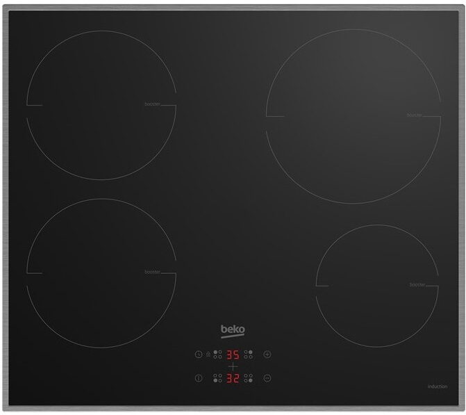 Indukční varná deska, Šíře: 60 cm, Barva: Černá, 4 indukční varné zóny, Senzorové ovládání, 9 úrovní + booster, 4 x Timer/ 4 x Booster, Displej, Dětský zámek, Ochrana proti přetečení, Ochrana proti přehřátí, Automatické vypnutí, Nerezový rámeček, rozměry (V x Š x H): 5,2 x 58 x 51 cm
