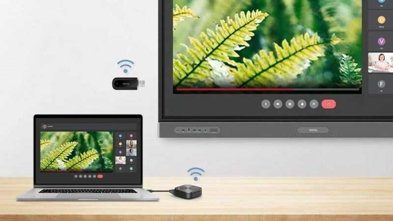 Jedním kliknutím můžete bezdrátově přenášet obsah své obrazovky. Adaptér WD02AT je plně kompatibilní s tlačítkem InstaShare, které umožňuje připojeným zařízením sdílet obrazovky, videa nebo soubory na displeji BenQ.