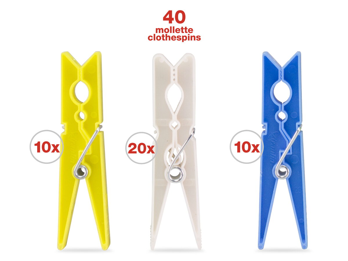 - 40 plastových kolíčků na prádlo, které zabrání padání oděvů, prostěradel apod.