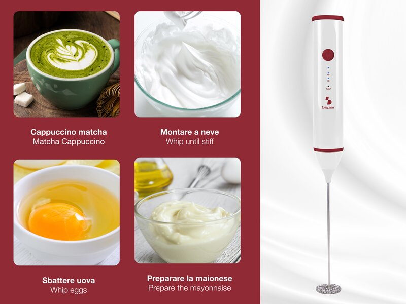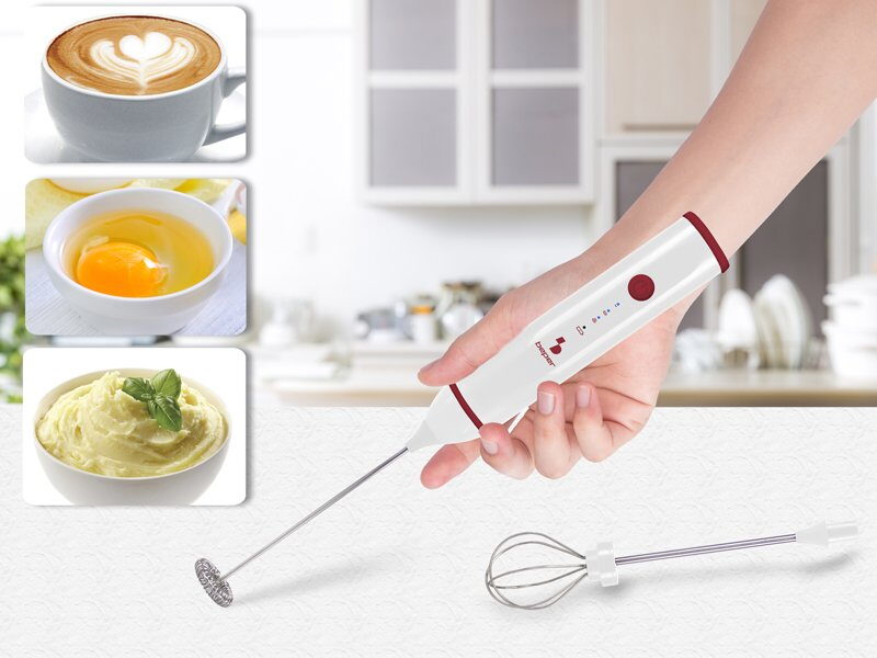 Klasická pěnící metlička je ideální pro šlehání mléka, přípravu cappuccina a čaje matcha. Druhá balónková hlava se podobá tradiční metličce, je velice praktická , využijete ji na šlehání různých potravin, jako jsou vejce, krémy a smetana. Milujete horkou čokoládu? Napěňovač je perfektním nástrojem pro přípravu dokonalého šálku horké čokolády.