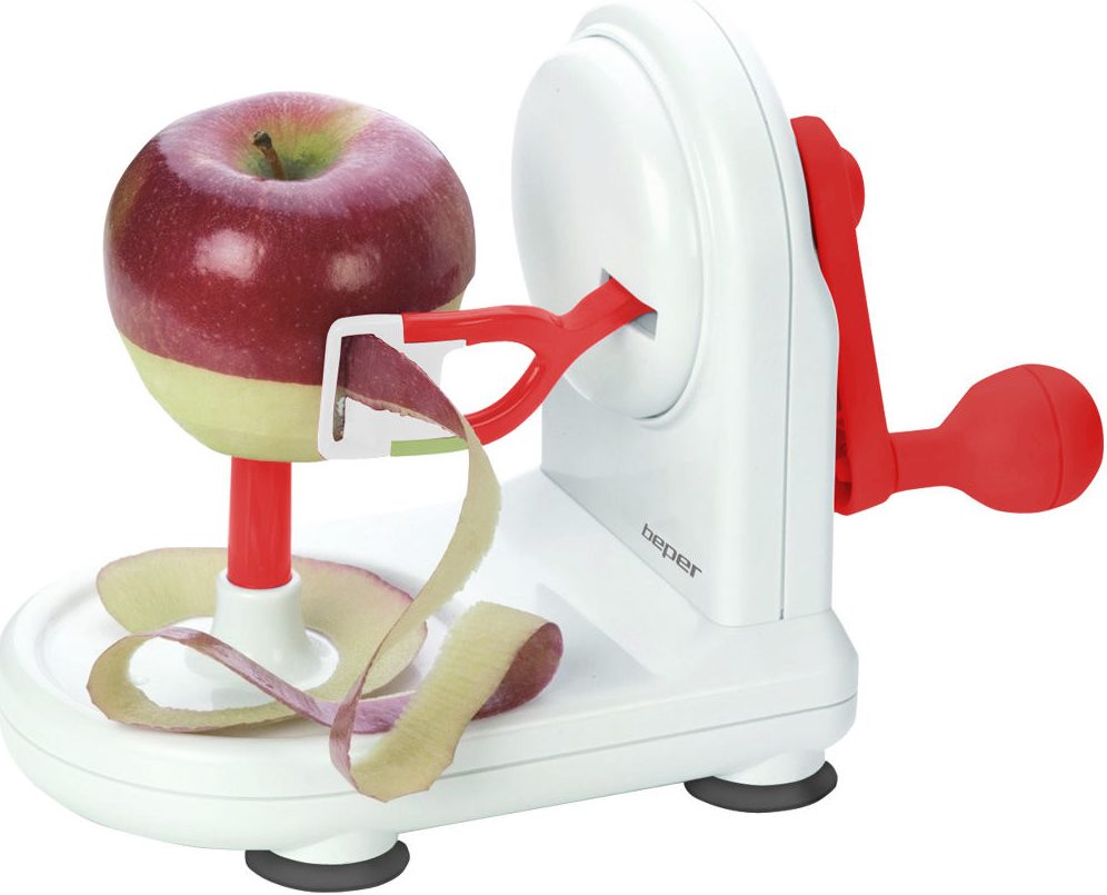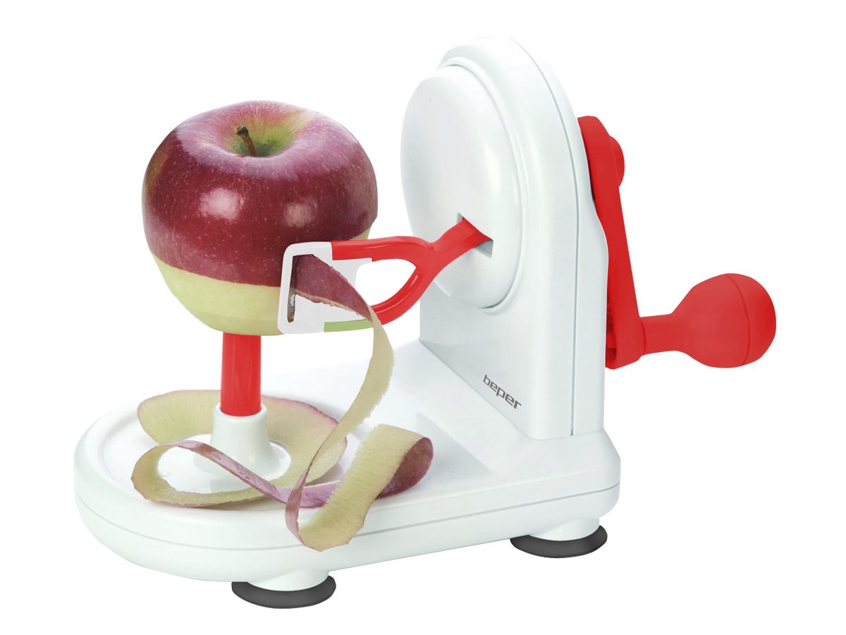 Pomocník malý, ale šikovný. Snadno nakrájí, oloupe a vykrojí jádřinec v jednom kroku. Využít ho můžete pro jablka i tvrdší hrušky. K dobré manipulaci pomohou čtyři přísavky zespodu kráječe, dobře ho udrží na svém místě.