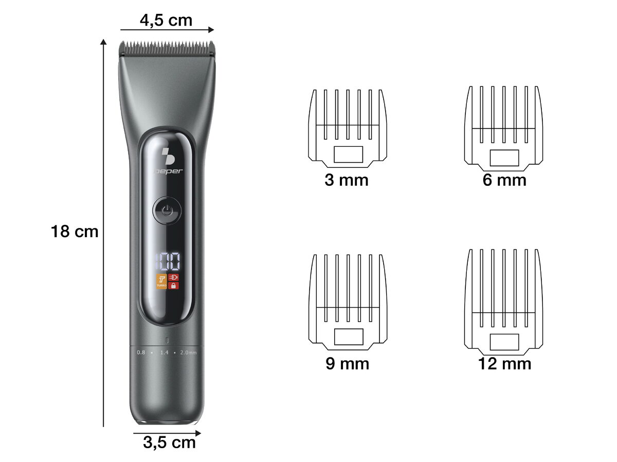 4 hřebenové nástavce (3, 6, 9 a 12 mm)