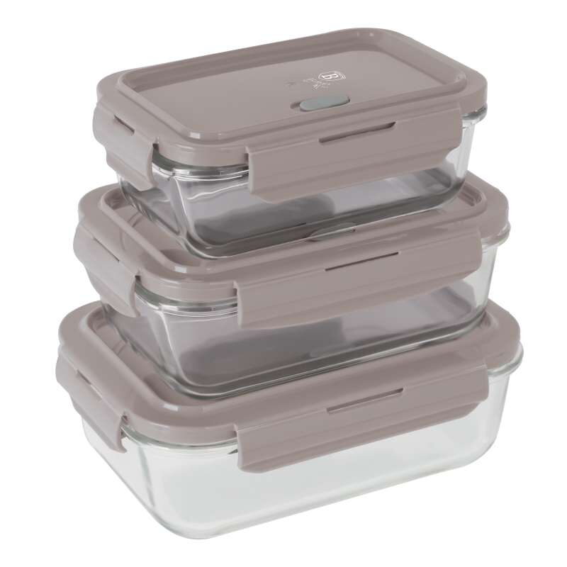 BERLINGERHAUS Dóza na potraviny s víkem skleněná sada 3 ks Taupe Collection BH-8792