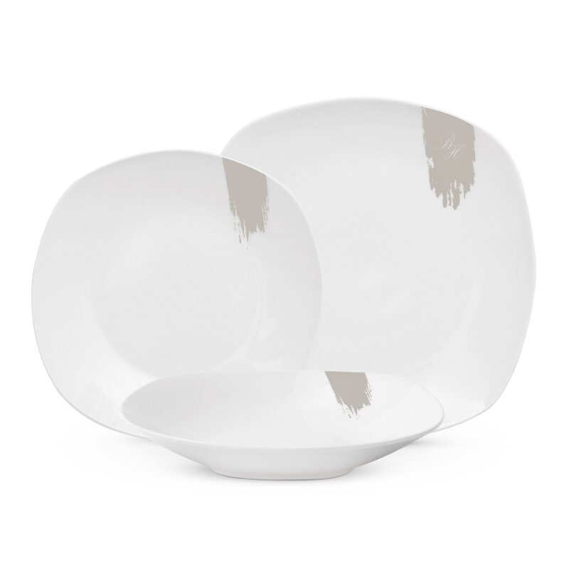 Jídelní sada talířů – 18 ks, prémiový porcelán, bílo-zelená