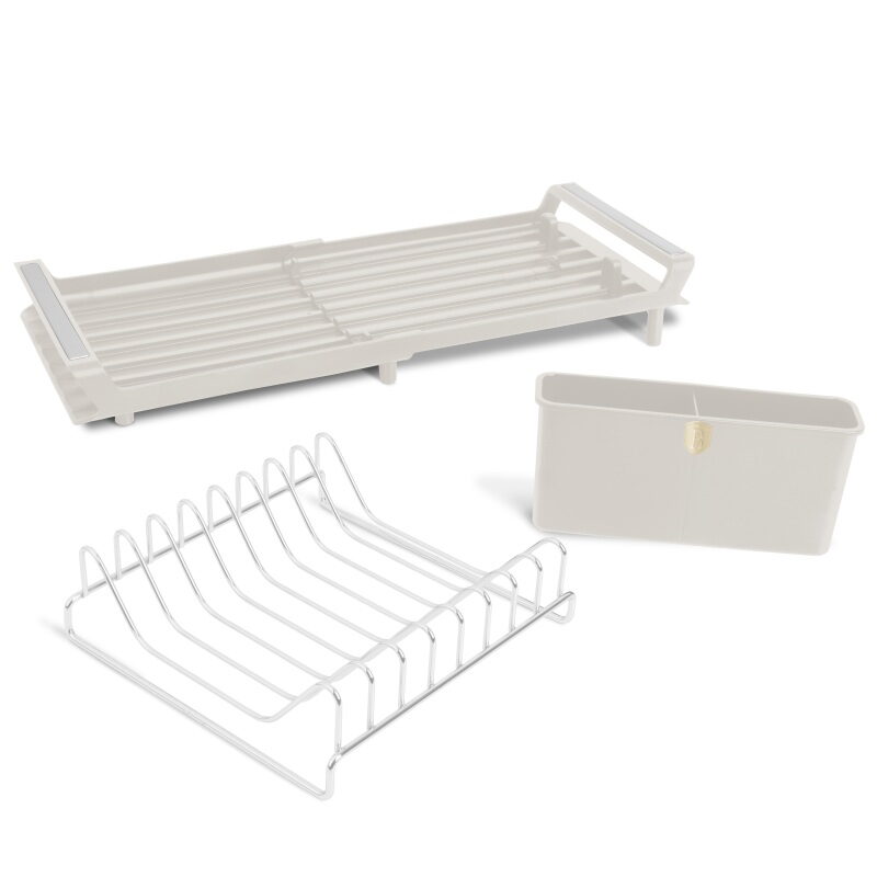 Praktické a elegantní řešení, které promění vaši kuchyň v dokonale organizovaný prostor. Tento odkapávač z nerezové oceli, plastu a železa je vybaven nastavitelným podnosem, takže si jej snadno přizpůsobíte přesně podle svých potřeb. Díky svému designu šetří místo a přináší flexibilitu i do menších kuchyní.