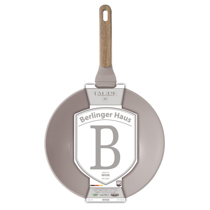 Technické parametry:• Materiál: kovaný hliník s nepřilnavým povrchem TitanPro• Wok pr. 28*7,8 cm 3,5 l• Barva: matná taupe, design dřevaREGISTROVANÝ DESIGN BERLINGERHAUS!Vlastnosti:• 3vrstvý odolný nepřilnavý povlak TitanPro• Ergonomická rukojeť s měkčeným povrchem, stříbrnou vložkou a barvou světlého dřeva, která zůstává chladná• Minimalistický styl• Matný povrch• Turbo indukční dno systém• Vhodné pro všechny typy varných desek• Ekologicky šetrné bez PFOA, olova a kadmia• Snadno se čistí