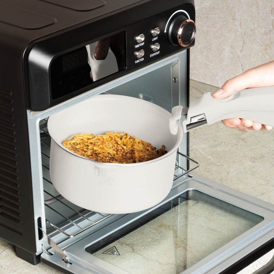 Objevte sadu nádobí Berlinger Haus, která spojí praktičnost, moderní technologie a elegantní design. Tato sada zvládne vše od smažení a dušení po zapékání. Díky stohovatelnému provedení ušetříte místo v kuchyni a chytrá víka Click It zajistí bezpečnou a pohodlnou manipulaci při vaření. Ergonomické knoflíky s měkkým dotykem a rukojeti zůstávají chladné, takže vaření je komfortní a bezpečné.