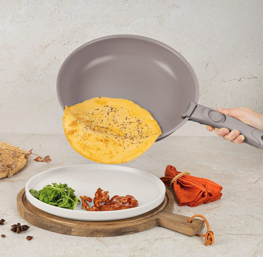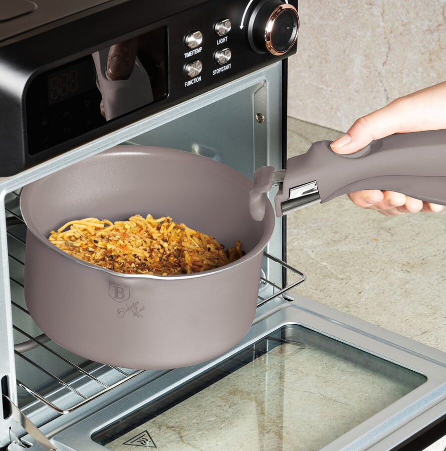 Stylová a praktická sada nádobí Berlinger Haus kombinuje moderní technologie s minimalistickým designem. Díky stohovatelnému provedení šetří místo v kuchyni a chytrá víka s cedníkem usnadňují manipulaci i kontrolu při vaření. Ergonomické knoflíky s měkkým dotykem a rukojeti Click It zůstávají chladné, což zajišťuje bezpečné a pohodlné použití.