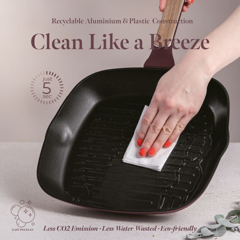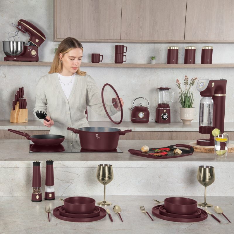 Vneste do své kuchyně nádech luxusu a severské elegance s exkluzivní sadou Leonardo Nordic Collection. Matná bordó barva v kombinaci se světlými dřevěnými detaily dává každému jídlu šmrnc a příběh, který stojí za to vařit znovu a znovu. Ať už připravujete rodinný oběd nebo grilujete na zdravý způsob, tato sada vám nabídne spolehlivost a styl, které ocení každý gurmán.
