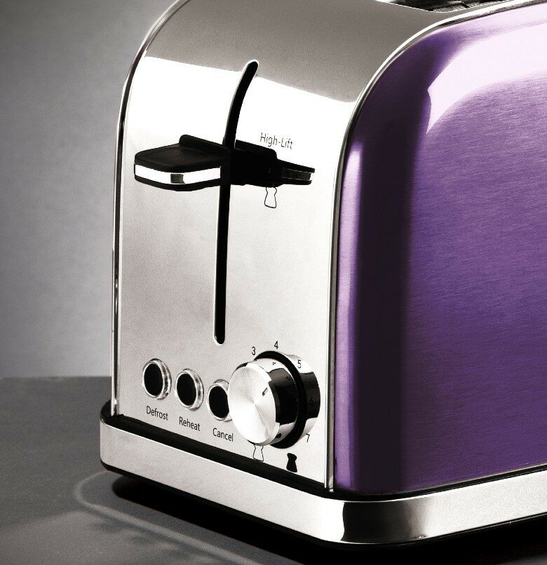materiál: nerezová ocel, 7 stupňů nastavení intenzity opečení, automatické vysunutí pečiva,automatické centrování pro rovnoměrný ohřev tenkých i silných toastů, protiskluzová úprava spodní základny.
