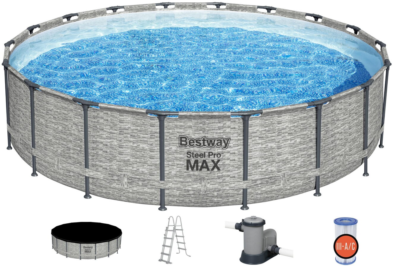 Nadzemní bazény navrženy s mimořádně pevným oválným rámem pro větší pevnost a odolnost. TECHNOLOGIE STEEL PRO MAX ™: - rám odolný vůči korozi, - PVC bazénový nátěr vyrobený technologií DuraPlus ™, - vypouštěcí ventil, - stěny bazénu pokryté mozaikovou grafikou, - montáž bazénu pomocí konektorů "C-konektor", - bazén vybavený systémem Seal & Lock System ™ zajišťujícím spojení mezi prvky regálu, - jednoduchá montáž, - patentovaný design. VYLEPŠENÍ NOVÉ GENERACE: - odolnější PVC bazénový nátěr vyrobený technologií DuraPlus ™, - kovová konstrukce odolná proti korozi, - vylepšený systém Seal & Lock System ™ zajišťuje jednodušší spojení mezi prvky rámu, - patentovaná grafika bazénu. VRCHNÍ KRYT BAZÉNU: Stojí za to postarat se o náležitou ochranu bazénu. V balení naleznete i vrchní krycí plachtu k bazén, která zabezpečí dokonalou izolaci teploty vody, ale i to, aby Vám do bazénové vody nenapadalo listí, nebo jiné předměty z vnějšího prostředí, které v bazénu nemají co dělat. To náležitě pomáhá udržet Vaši vodu v bazénu déle čistou. BEZPEČNOST PRO DĚTI: - odnímatelná část schodů brání dětem bez dozoru vstoupit - výška je ideální pro danou velikost bazénu - vyztužený kovový rám odolný proti korozi - pohodlné zábradlí POPIS FILTRAČNÍHO ČERPADLA: Čerpadlo umožňuje snížit náklady na provoz bazénu. Kartušové čerpadla jsou jedním z nejjednodušších a nejlevnějších k použití. TECHNICKÉ ÚDAJE FILTRAČNÍHO ČERPADLA: - filtrační čerpadlo [58389], - filtrační vložka III [58012], - výkon čerpadla 5,678 l / h, - průtok vody 3 794 l / h, - energie 220-240, - hmotnost 6 kg, - certifikace CE, TÜV Rheinland. TECHNICKÉ PARAMETRY BAZÉNU: - rozměry bazénu 549 x 122 cm - hmotnost 83,6 kg - doporučená 90% vodní náplň - kapacita bazénu 23 062 litrů OBSAH BALENÍ: bazén [5618Y], filtrační čerpadlo [58389], antibakteriální filtr [58012], žebřík [58331], bazénová plachta [58031], filtrační příslušenství, souprava na úchyt, připojovací hadice, instrukce, manuál.