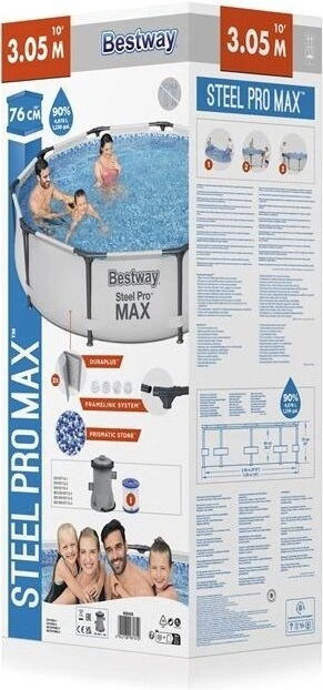 Stačí pouze sestavit kovovou konstrukci a napustit vodou. Bazén je vhodný pro rodiny s dětmi a díky své kovové konstrukci je velmi pevný a stabilní. Stěny bazénu jsou vyrobeny ze tří samostatných vrstev materiálu, vnitřní vrstva je vyrobena z polyesterové síťoviny a vnější dvě vrstvy, z testovaného zdravotně nezávadného PVC. Součástí bazénu je kovová konstrukce, kartušová filtrace s kapacitou průtoku (1249 l/hod) a opravná sada na bazény.