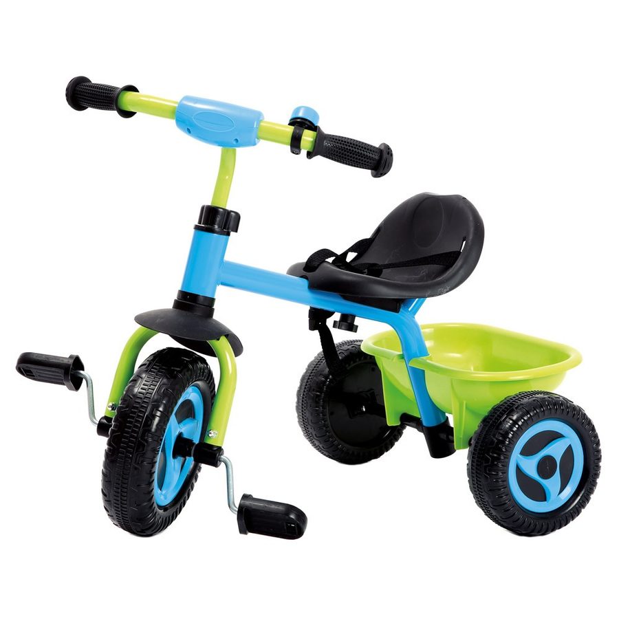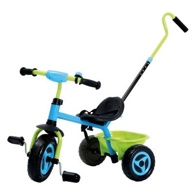 Stabilní šlapací tříkolka s odnímatelnou vodící tyčí a úložným prostorem za sedlem. Pohodlné široké sedlo je pro větší bezpečnost vybaveno pásem. Na řídítcích je tříkolka vybavena zvonečkem. Hlavní vlastnosti:odnímatelná vodící tyčširoké sedlo s bezpečnostním pásemúložný prostor