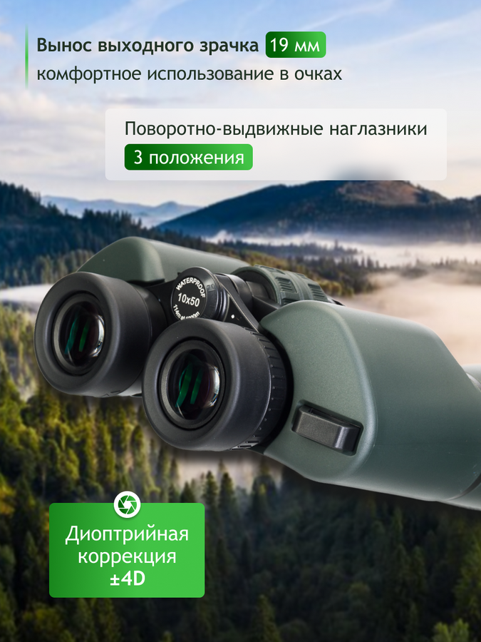 Binokulární dalekohled je vybaven dioptrickým nastavením a centrálním ostřením s nastavitelnou mezipupilární vzdáleností 56 mm až 70 mm. Otočné očnice nabízejí tři polohy pro pohodlné používání.