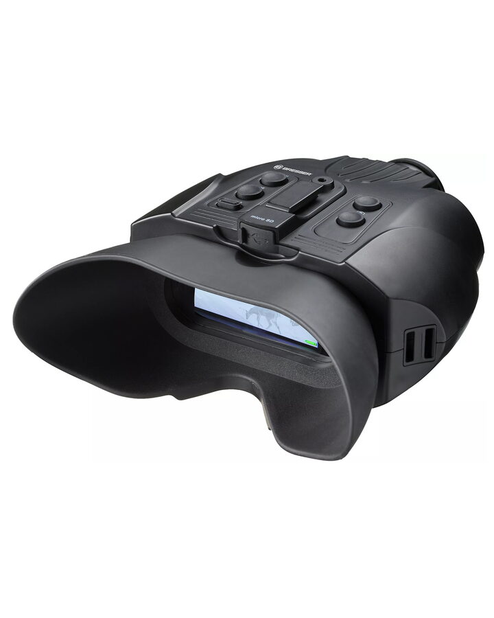 This digital night vision device offers a particularly great viewing comfort thanks to its large display and observation with both eyes. Due to the digital design it is insensitive to over-radiation. The integrated infrared lighting makes it easy to observe in complete darkness. Due to the great insight you can also observe with some distance pleasant through the night vision device. The built-in rechargeable battery allows an observation time of about 8 hours. You can charge it via the included USB cable or an optional commercial power bank. The simultaneous observation and operation with the power bank is of course possible. Due to the 2x digital zoom you can look at their objects closer without approaching the object itself. The detection range is at night at about 120m – more distances, however, are possible in good low light conditions. You can observe this device very comfortably with both eyes.