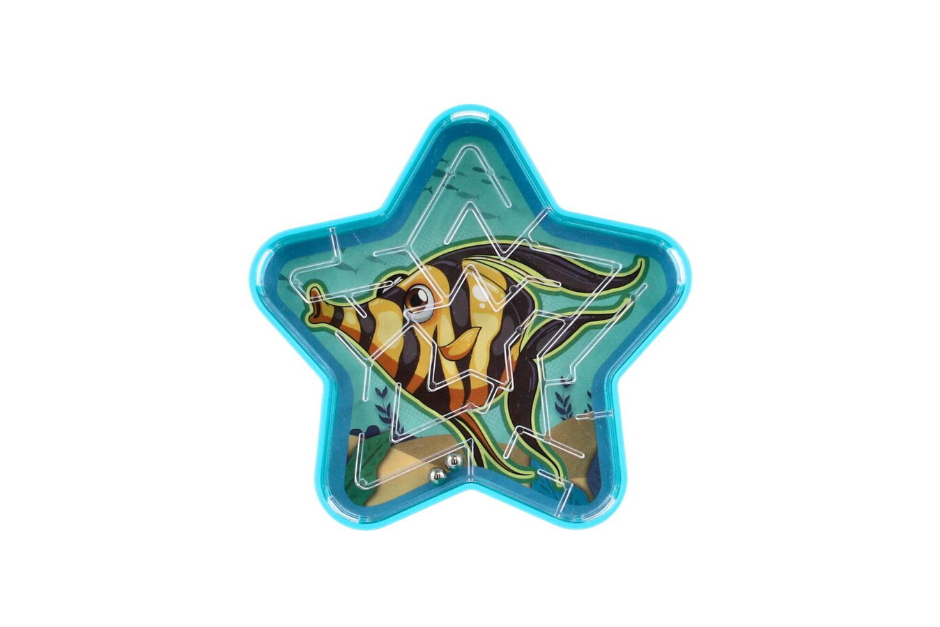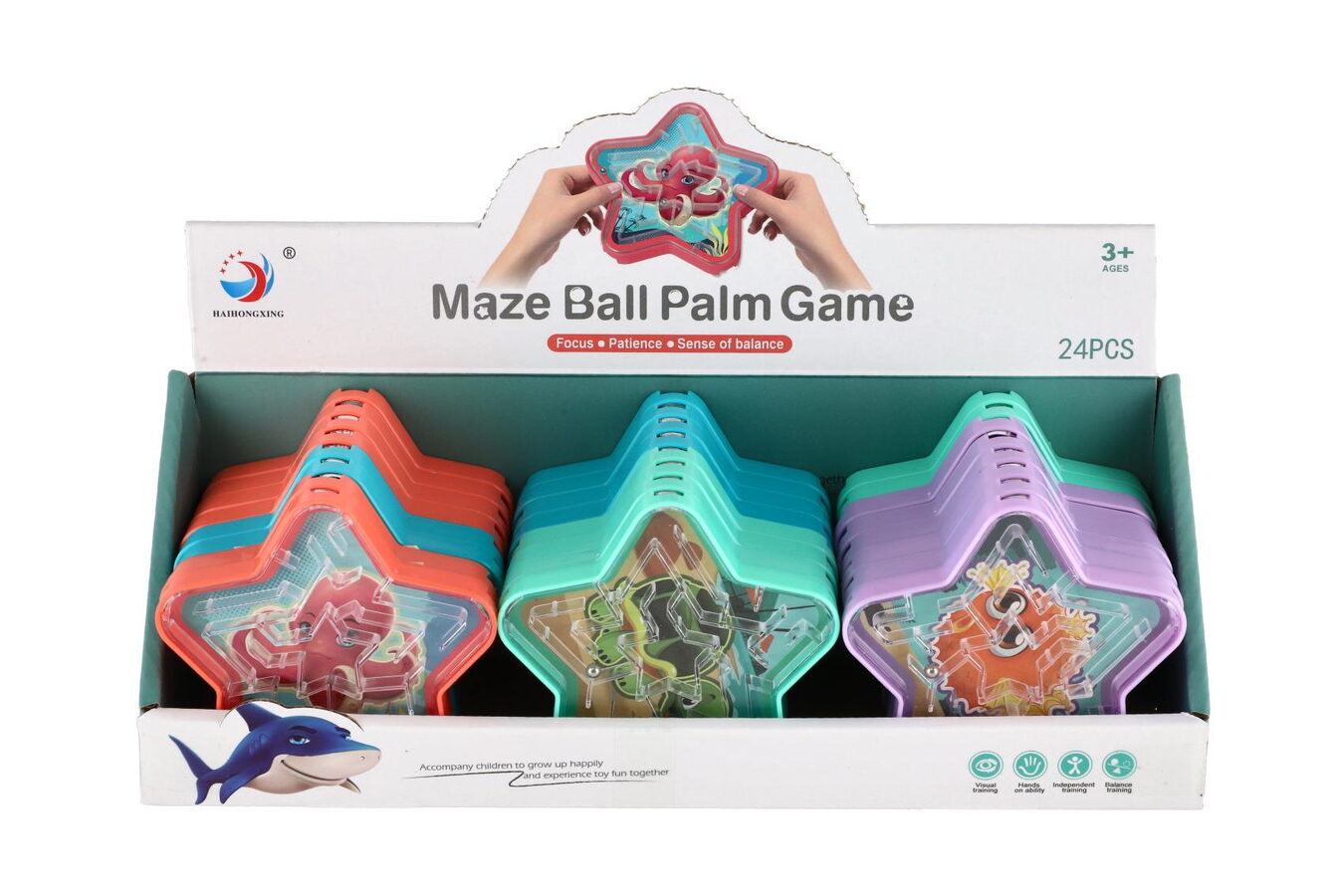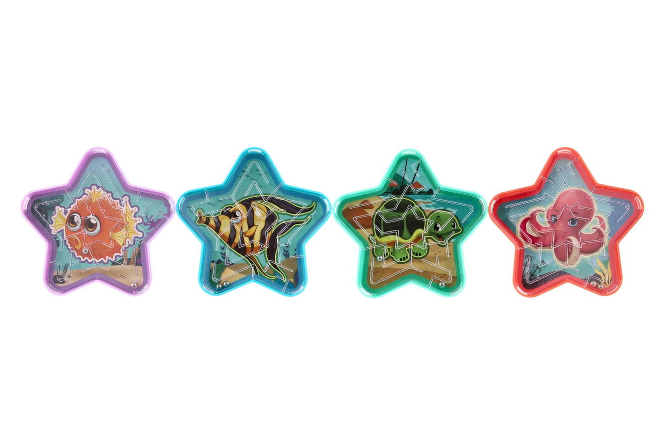 Bludiště hlavolam s kuličkou hvězda plast 9cm 4 barvy 24ks v boxu