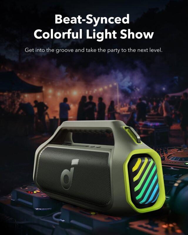 Váš zvuk, vaše cesta: Venkovní reproduktor Boom 2 Plus je vybaven přizpůsobitelným profesionálním ekvalizérem, který vám pomůže najít perfektní zvuk pro jakoukoli skladbu nebo atmosféru pomocí aplikace Soundcore. A s PartyCast 2.0 můžete připojit až 100+ reproduktorů Soundcore podporující tuto funkci a posunout párty na další úroveň.