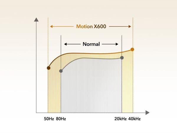 Prostorový zvuk: Motion X600 je inspirovaný divadelní akustikou, má 5 měničů a 5 zesilovačů, které jsou umístěny tak, aby poskytovaly zvuk všude kolem vás. Pokaždé, když stisknete tlačítko přehrávání, budete mít pocit, že jste v místnosti se svým oblíbeným umělcem. Reproduktor podporuje trojici standartu Hi-Res Audio, Hi-Res Audio Wireless a LDAC a disponuje mimořádným frekvenčním rozsahem 50Hz až 40kHz.