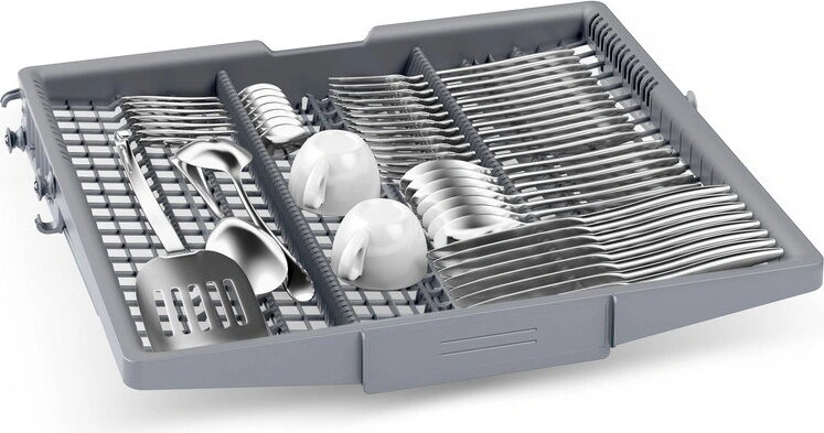 Interiér myčky nabízí flexibilní koše s mimořádnou stabilitou. Budete mít dostatek prostoru pro všechno nádobí. Příbory jsou uloženy ve výsuvné příborové zásuvce. Tam se vejdou také naběračky, drobné kuchyňské náčiní nebo šálky na espresso