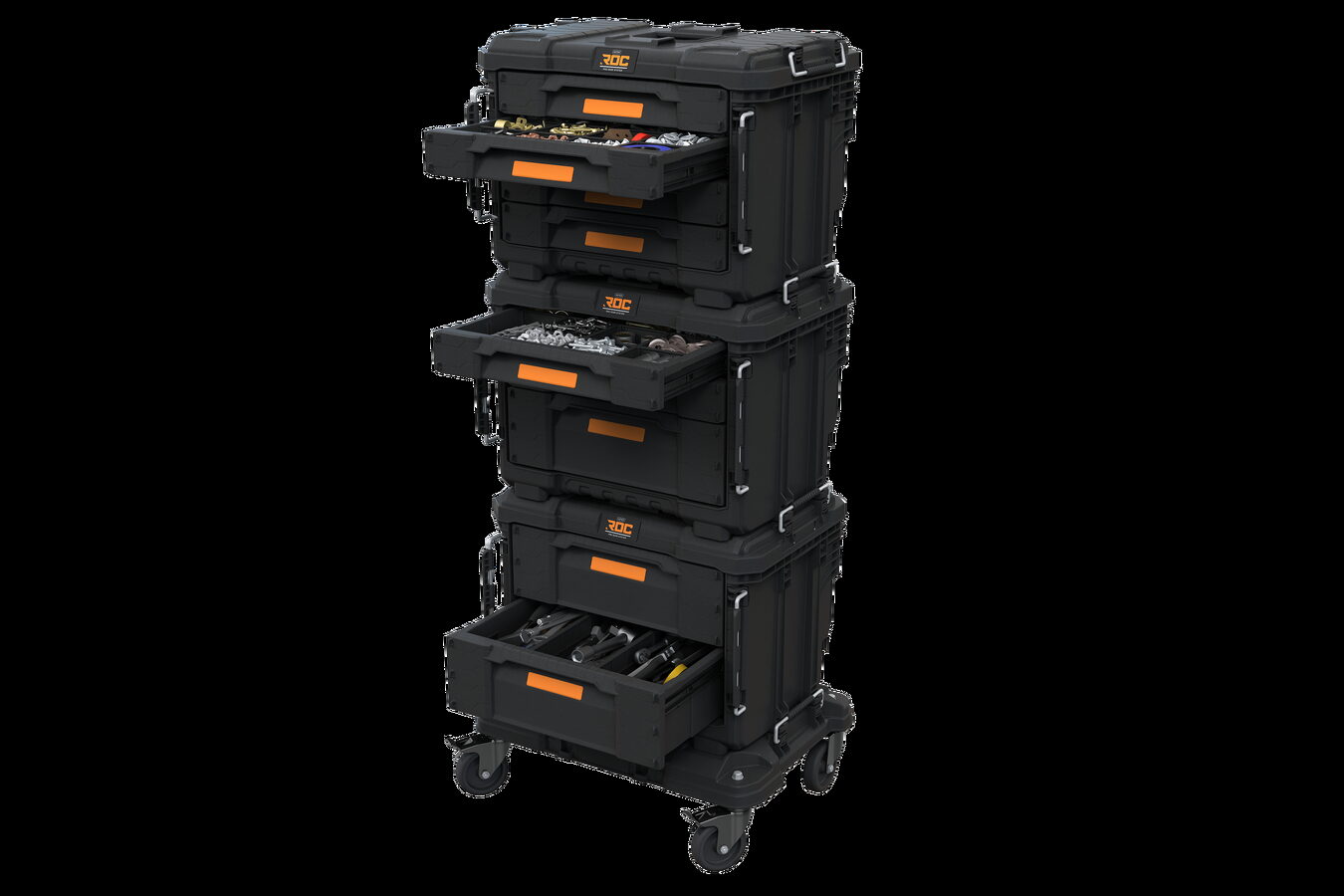 Box Keter ROC Pro Gear 2.0 je součástí pokročilého modulárního systému. Kombinace kompatibility, odolnosti a chytrého uspořádání z něj dělá ideálního pomocníka nejen do dílny, ale i na stavbu. Je plně kompatibilní s řadami Pro Gear 1.0 a 2.0, takže jej snadno začleníte do existující výbavy.