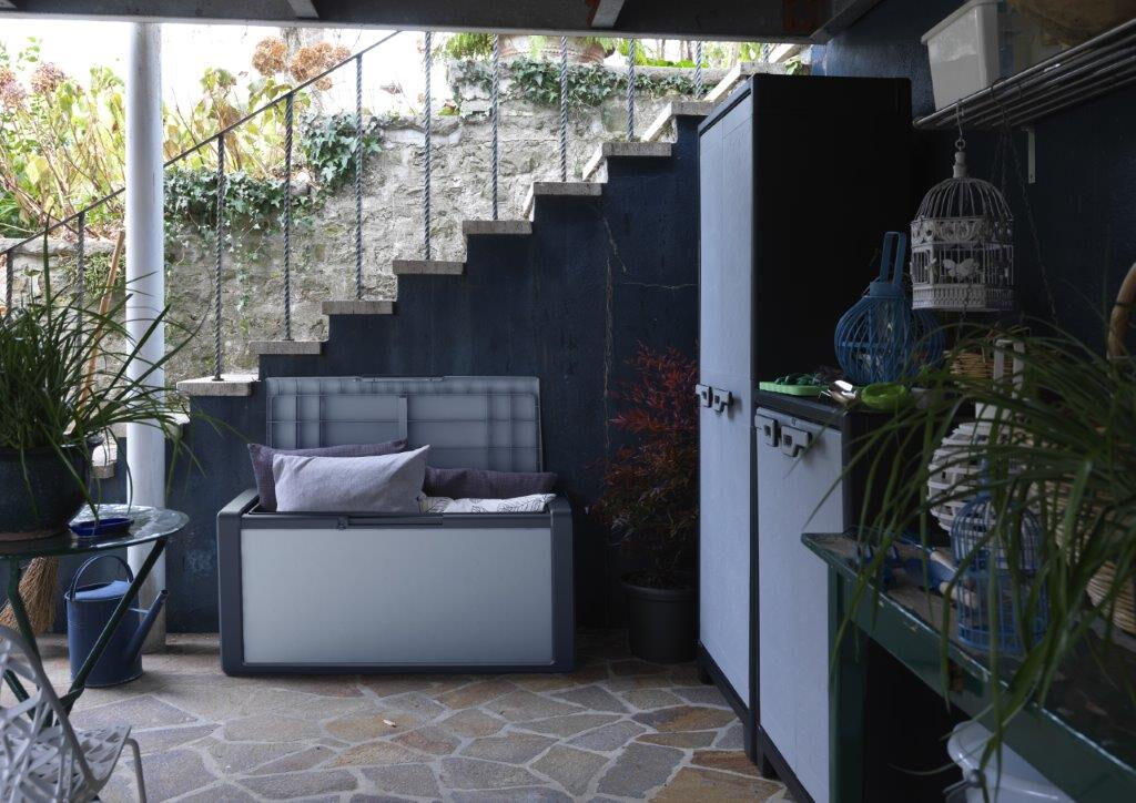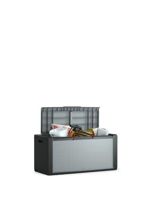 Truhla od značky Keter je ideálním pomocníkem pro udržení pořádku na vaší terase nebo v altánku. Uvnitř bez problémů uschováte textilie, květináče, zahradní náčiní i sezónní dekorace. Díky víku s certifikací IPX1 odolá svislému dešti a pokud box umístíte pod přístřešek, budou vaše věci spolehlivě chráněny.